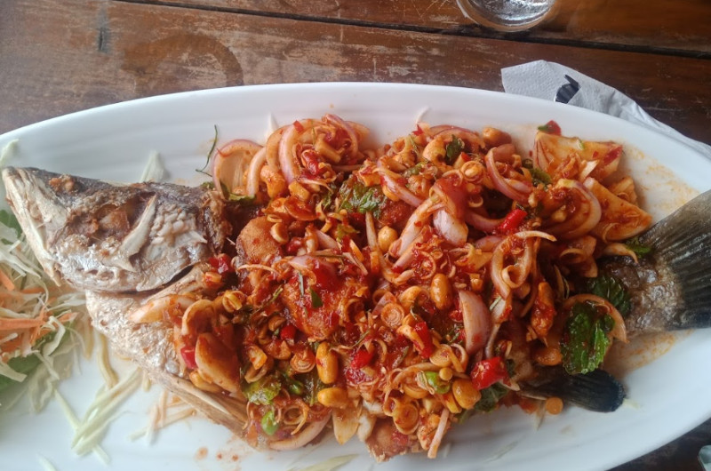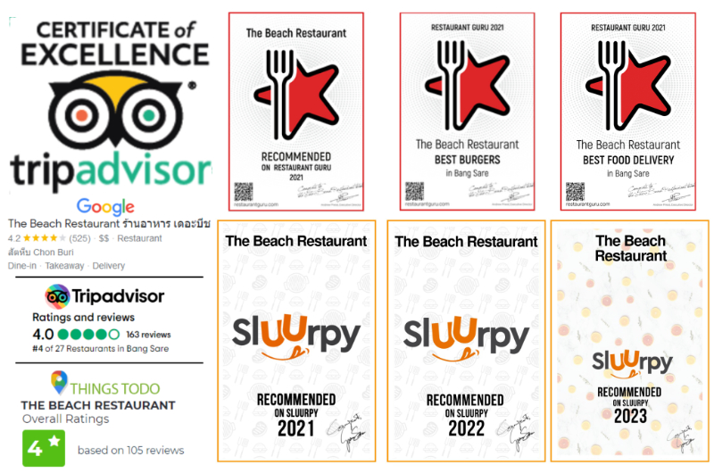 อาหารทะเล ที่สามารถมองเห็นชายหาดที่สวยงาม บางเสร่